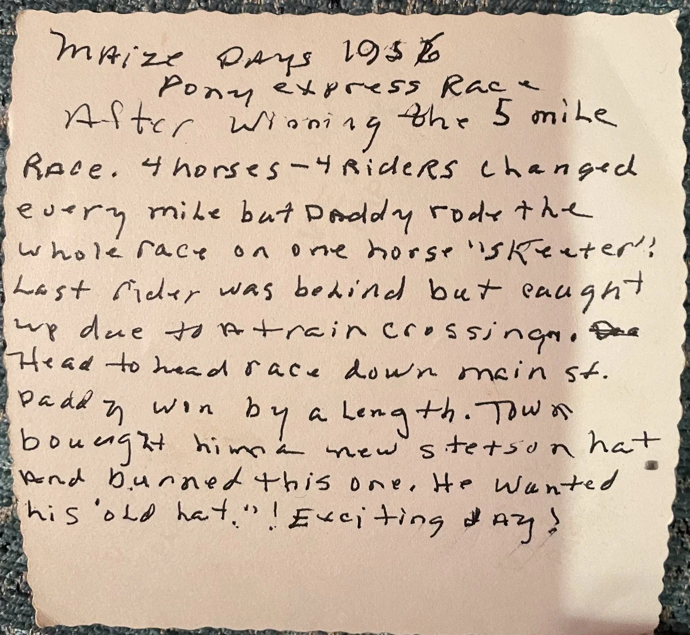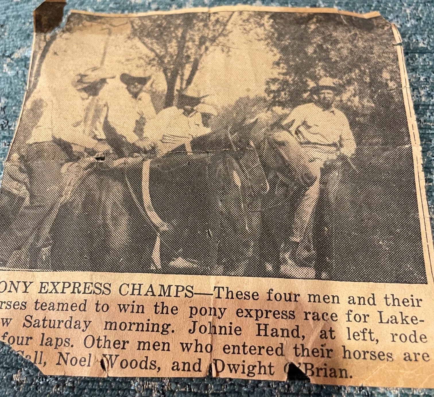 In Friona, Texas, my pampaw Johnie entered a four-mile relay horse race. Every other team had four riders and four horses. Johnie had one horse, Skeeter, that he bred and trained himself.